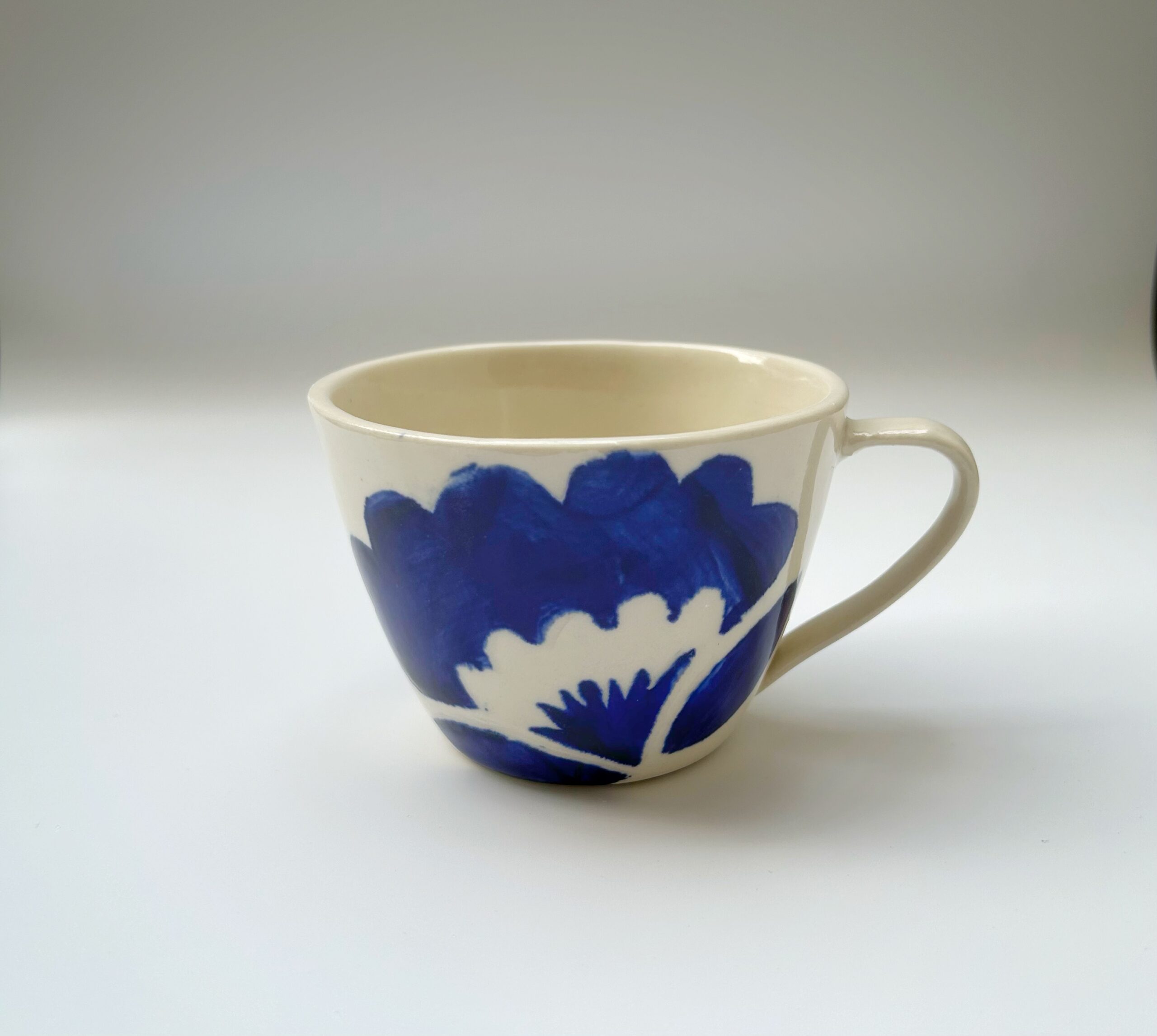 En nätt kaffekopp gjuten i porslin/ stengods blandning och hand dekorerad. Kopparna hämtar inspiration från naturens mönster och har en nostalgisk men modern känsla. Alla koppar handmålas med underglasyr innan de glaseras.