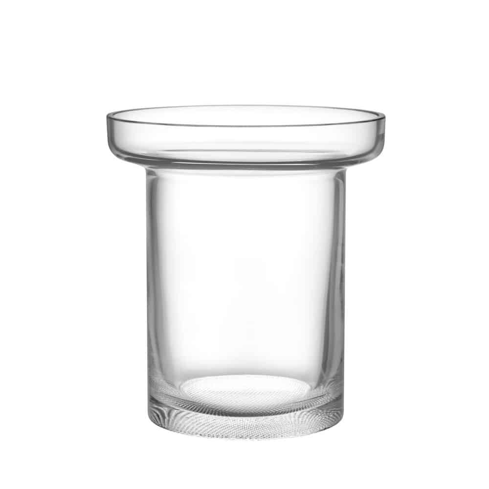 Serien Limelight från Kosta Boda karaktäriseras av massiv fot och en lika dekorativ som subtil mönstring med en ljusspridande effekt som får delarna att skina ikapp. Tulpanvasen i klarglas är försedd med en vid krage som ramar in och framhäver vilken bukett som helst. Vasens lite lägre form passar för ett bredare fång blommor.