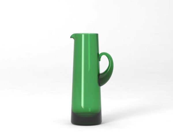 Elegant, munblåst kanna i avskalad och funktionell stil. Kannan började tillverkas på beställning av Svenskt Tenn och hade under 1940- och 1950-talen beteckningen S7. Efter att den uppmärksammats vid designutställningen i Helsingborg 1955 fick den sitt nuvarande namn, H55.