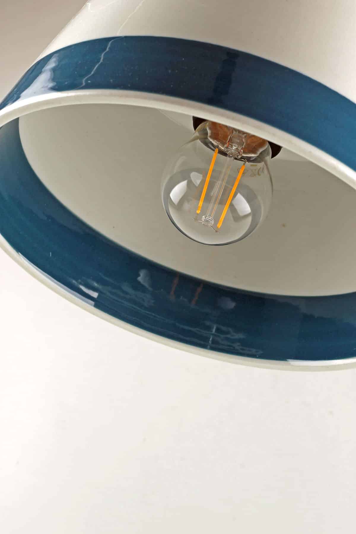 Handgjord unik pendellampa. Numrerad och signerad: Retrofrun 978. Max. 40 W. Ljuskälla ingår ej. CE-märkt elmateriel.